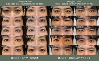リスク:熱感・頭痛・痒み・むくみ・二重の幅が普遍、狭くなる、知覚の麻痺・鈍さ、しびれ、傷の隆起・凹み ・色素沈着、タルミが残る、左右差などを生じることがあります。