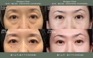 頬の脂肪が下がり中顔面の組織が減ることにより凹みが生じている方は、糸リフトで下がった組織を持ち上げることで、より影クマ感の改善に繋がるケースもあります。頬骨の上から靱帯をはがす裏ハムラ法で行う剥離により糸リフトで組織を持ち上げやすい状態になっているため、クマの原因によっては糸リフト併用の提案をしております。